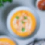 5. Bruk en stavmikser og kjør suppen glatt. Tilsett mer vann hvis nødvendig. Smak til med limesaft og topp med ønsket topping.