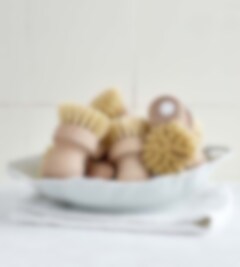 Gryteskrubb fjerner alle matrester uten å belaste miljøet. Og så er den så fin i formen der den ligger ved vasken.