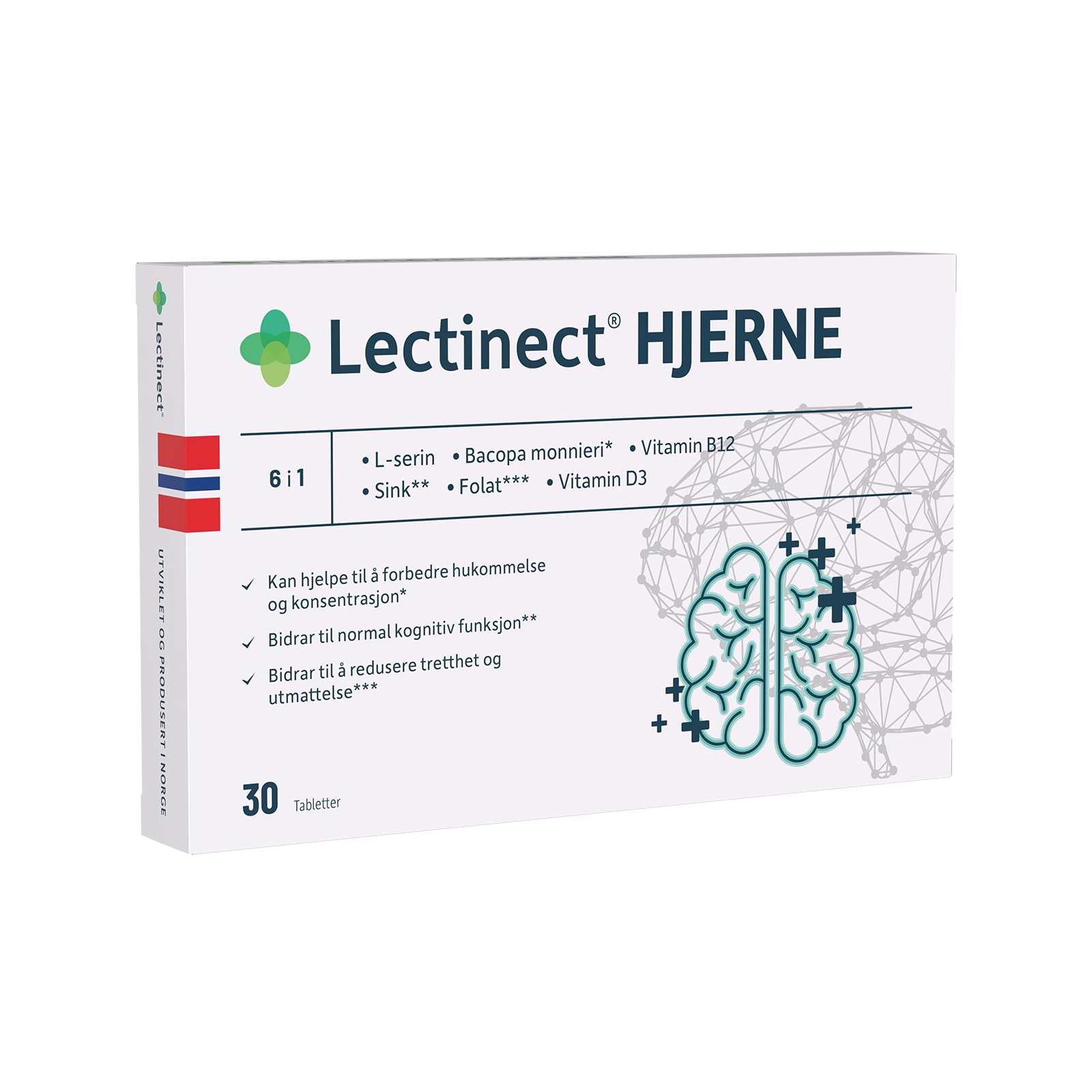 NYHET - endelig i butikk. Lectinect Hjerne er et godt sammensatt produkt for kognitiv helse. Det inneholder urten Bacopa monnieri, anerkjent fra tradisjonell bruk i India, som kan hjelpe til å forbedre hukommelse og konsentrasjon. Dessuten sink som kan bidra til normal kognitiv funksjon, og vitamin B12 som bidrar til normal psykologisk funksjon.