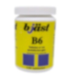 Bjà❤st B6 er basert på naturlig gjær og standardisert på vitamin B6. Hver tablett inneholder maksimum av det som er tillatt i Norge av vitamin B6, 4,2 mg.