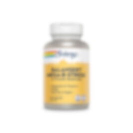 Solaray Mega-B-stress inneholder alle B-vitaminene sammen med C-vitamin og magnesium.