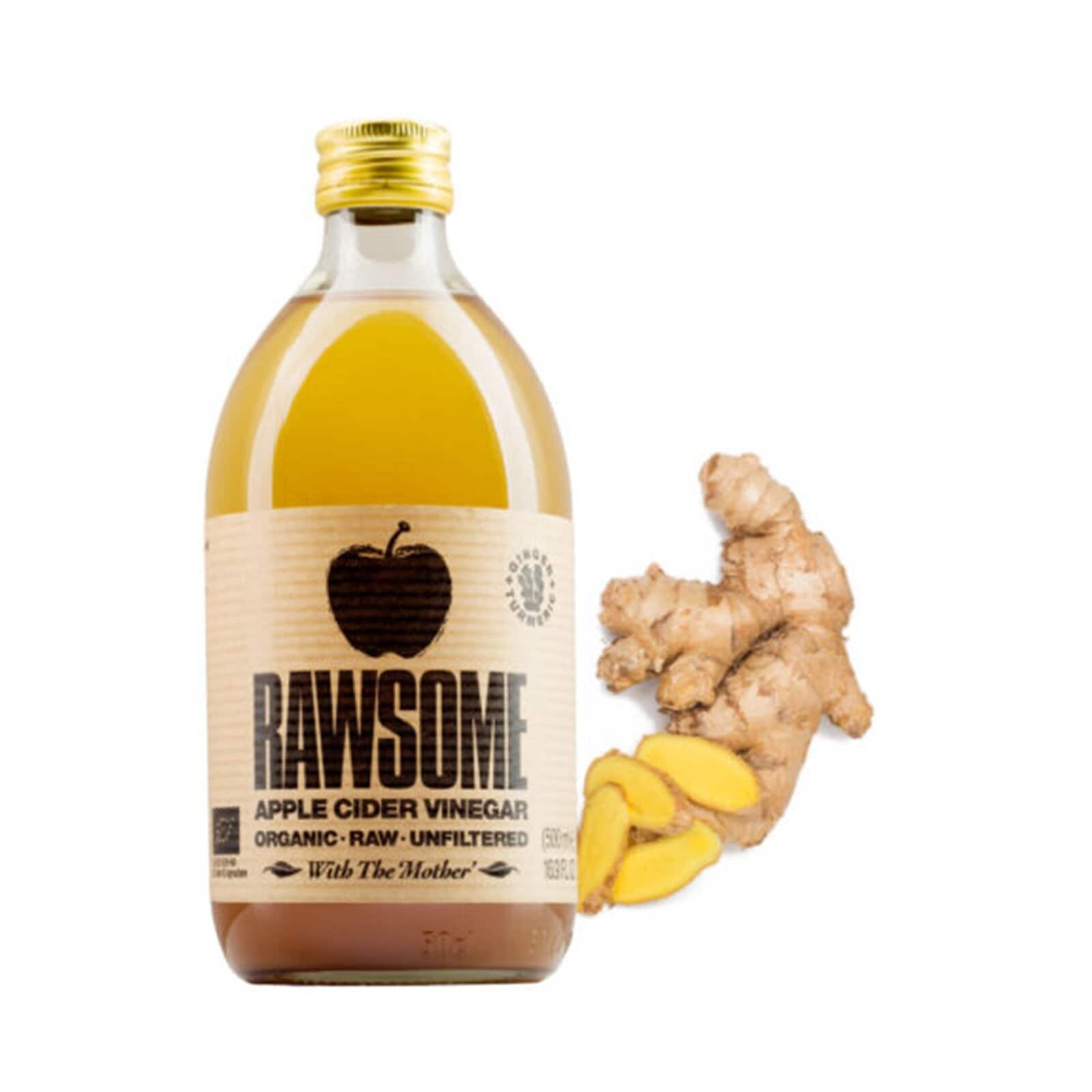 Økologisk epleeddik tilsatt ekte ingefær og gurkemeie.