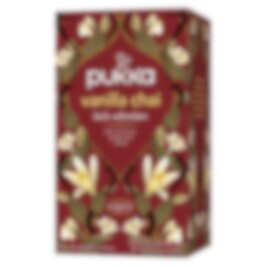 En kopp full av søt chai med vanilje, og et hint av kanel og ingefær. Avrundet med kardemomme, fennikel og lakris - for smakens skyld. Pukkas unike vri på tradisjonell chai gir deg seks forskjellige urter som alle er proppfulle av energi. Dette er en aromatisk sensasjon - len deg tilbake og nyt! Fairtrade.