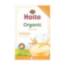 En mettende og glutenfri fullkornsgrøt med hirse. Perfekt som kveldsmåltid for å venne babyen til fastere føde. Fra 6 mnd. Holle barnegrøt fremstilles av hele kornet, også den verdifulle kimen og skallet. På denne måten utnyttes alle kornets naturlige næringsstoffer som proteiner, karbohydrater, fett, mineraler og vitaminer fullt ut. De viktige fordøyelsesfremmende fibrene beholdes også. Næringsrikt og mettende for de små. Økologisk Glutenfri Sukkerfri Velsmakende og mettende Lett å fordøye Enkel å tilberede