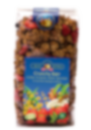 Crunchy Bær blir skånsomt bakt (ikke stekt) og har premium kvalitet pga. de høyverdige og ferske ingrediensene. Etter bakingen tilsetter vi 3% frysetørkede bær (tilsvarer 10 x mengde ferske bær). Dette er premium økologiske Jordbær, Bringebær, Blåbær og Bjørnebær.