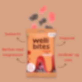 Wellibites Jordbær og Cola. Et sunnere godteri som også smaker godt! Glutenfritt, sukkerfritt, vegansk, med naturlige smaker og farger, næringsberiket med magnesium.