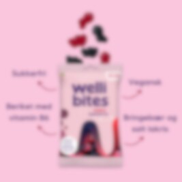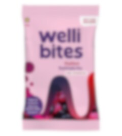 Wellibites er et sunnere alternativ til tradisjonelt godteri og inneholder 40% mindre kalorier. Har kun naturlige fargestoffer og inneholder Vitamin B6 som bidrar til normalt immunforsvar & karbohydratomsetning. Wellibites er i tillegg sukkerfritt, vegansk og glutenfritt. Med en herlig blanding av søt bringebær og salt lakris.