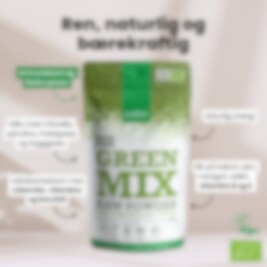Purasana Green Mix Powder er en kilde til en rekke vitaminer og plantenæringsstoffer som lett absorberes i kroppen. Et komplett næringsmiddel, rik på klorofyll og selvfølgelig uten syntetiske tilsetningsstoffer.