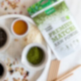 Purasana Matcha kommer fra Japan, landet med den beste teen! Den grønne teen går igjennom en skånsom og intensiv produksjonsprosess hvor tebladene blir plukket, dampet og malt til pulver. Sammenlignet med annen grønn te har matcha en mildere smak og en skarp grønn farge.