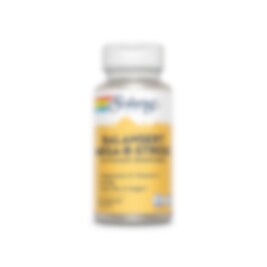 Solaray Mega-B-stress inneholder alle B-vitaminene sammen med C-vitamin og magnesium.