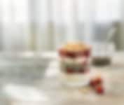 Legg lagvis chiapudding, youghurt, bringebær (frosne eller ferske) og ristede nøtter.