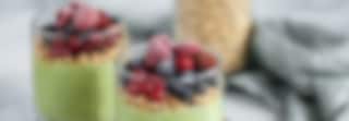 - Topp chiapuddingen med matchayoghurt og gojibær eller annen topping som tilfører litt "crunsj"