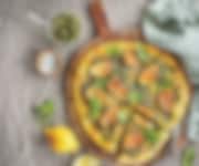 Smør litt pesto på pizzaen og legg på grillede squashskiver. Topp med solsikkefrø, sitronsaft, mynte og grovmalt havsalt.