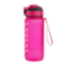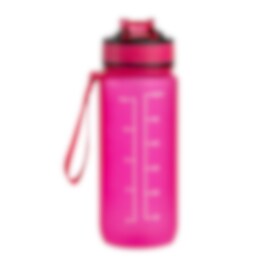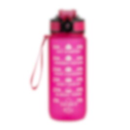 En kompakt motivasjonsflaske på 600 ml i en knæsj rosa farge. Flasken har et hendig sugerør, lokk i stilig rosa/sort farge og en praktisk reim som lar deg bære den rundt håndleddet eller i vesken.