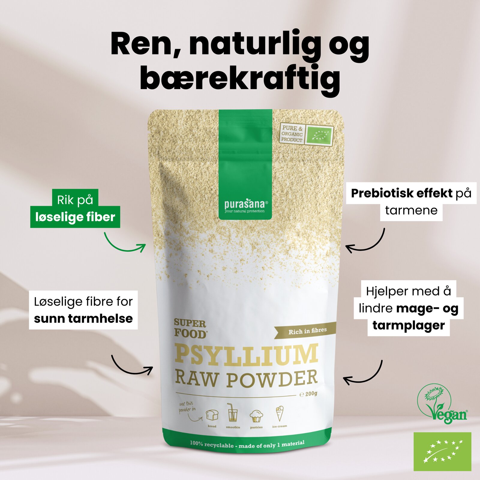 Purasana psylliumpulver kommer fra de knuste frøene fra plantago ovata-planten som stammer fra India.