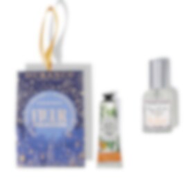 Den perfekte gaven! Gavesett med velduftende puteparfyme og fuktighetsgivende håndkrem i lekker gaveeske.