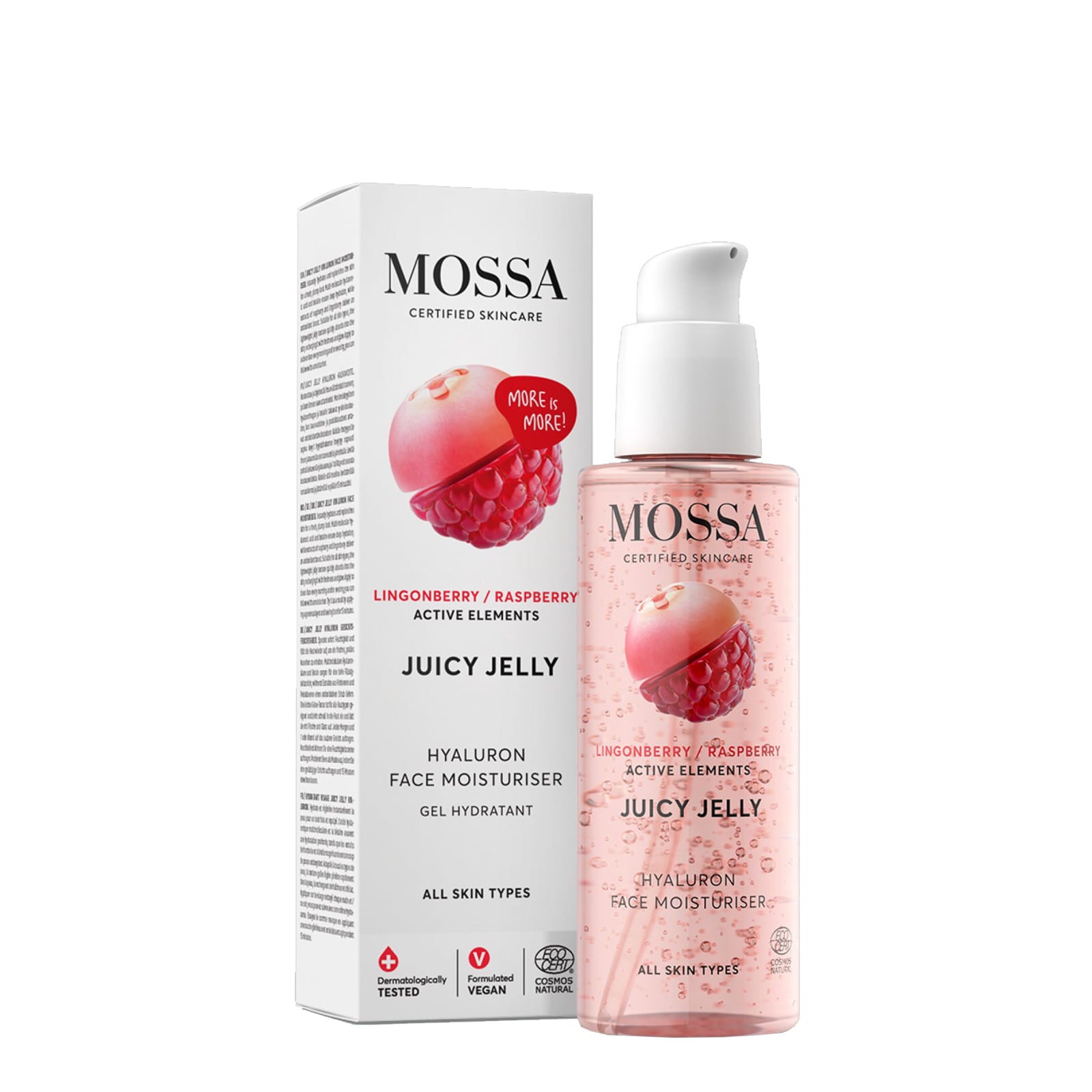 En fuktig og harmonisk hud er grunnlaget for en frisk og sunn hud. Juicy Jelly Hyaluron Face Moisturiser er et lett, oljefritt serum som effektivt fukter huden. Antioksidantrike bringebær og hudpleiende tyttebær sammen med hyaluronsyre gir huden effektiv fuktighet og etterlater den frisk, fyldig og full av glød. Den unike, lette geléaktige sammensetningen absorberes raskt i huden og beroliger og fukter huden i dybden. Juicy Jelly Hyaluron Face Moisturiser gjør hver dag til en dag med god hud. Brukes daglig på ren hud morgen og/eller kveld. Tips: Bruk som primer for sminke. Bruk som maske ved å påføre et tykt lag på huden og la virke i 15 minutter.