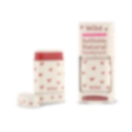 Wild Deo stick Pink grapefruit lime startpakke er en naturlig, refillbar deodorant med hjerte-mønstret etui og med duft av grapefrukt og lime.